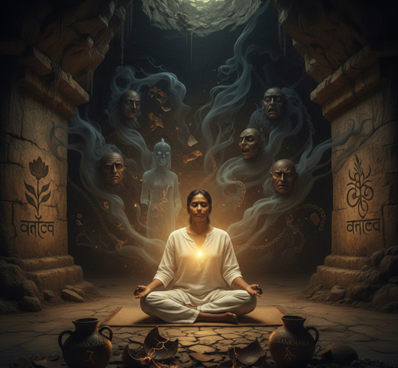 3. Đối diện với "Tập khí" (Sankhara)Trong Vipassana, bóng tối chính là những Sankhara – những phản ứng tâm lý tích tụ từ quá khứ. Khi bạn giữ tâm bình thản trước một nỗi đau đang trỗi dậy, bạn đang cắt đứt chuỗi phản ứng cũ. Nỗi đau đó trồi lên để được "thanh lọc" và giải phóng, thay vì bị đè nén sâu hơn vào tiềm thức.